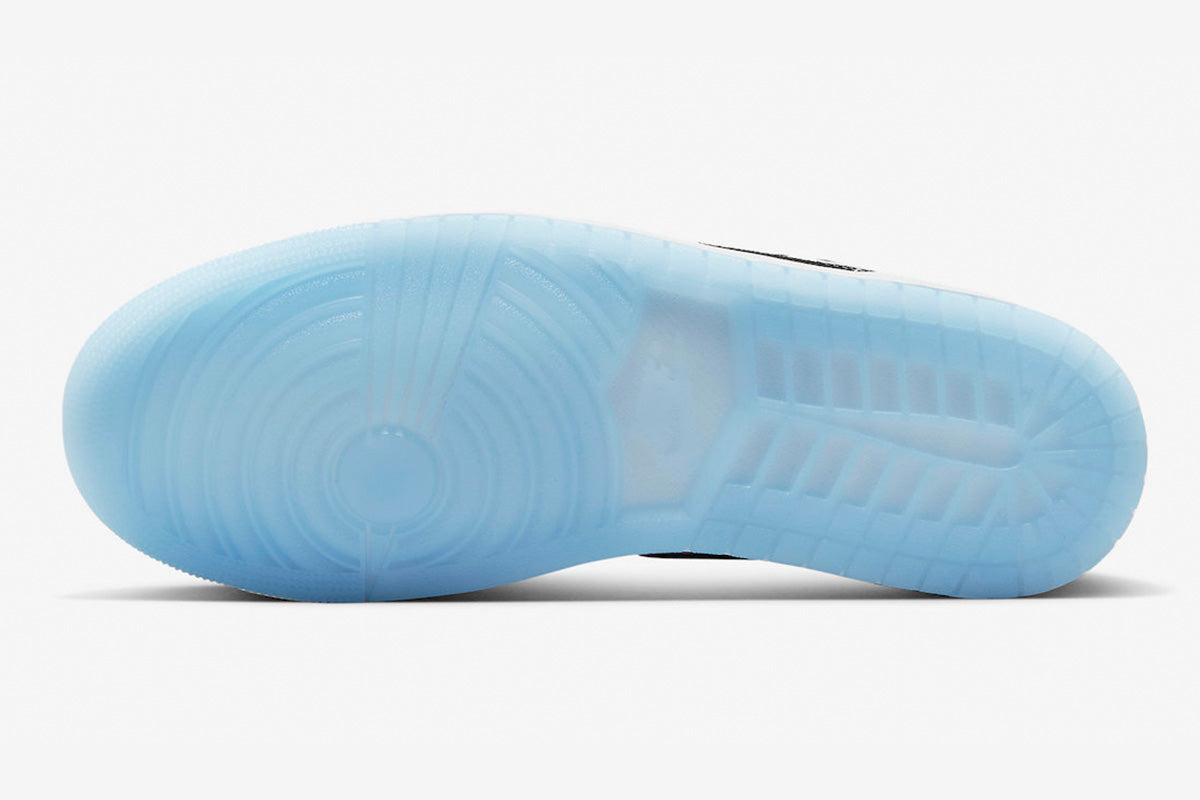 This special-edition low-cut pulls straight from the AJ11 ‘Concord,’ featuring a mix of glossy black patent leather and smooth white leather across the upper. The contrast is sharp, premium, and instantly recognizable to anyone who knows their AJ history. Jordan Brand rounds it out with a translucent blue outsole and a crisp white Wings logo stitched onto the heel.